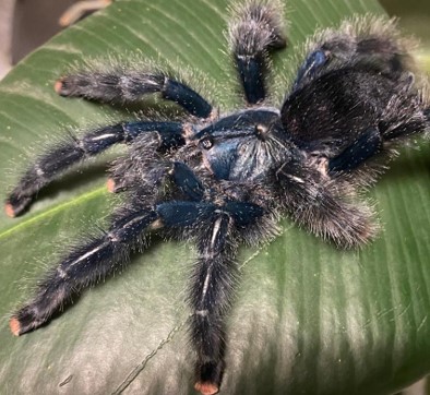 Bei Avicularia metallica "cayenne" handelt es sich um die klassischen Avicularia metallica aus französisch Guyana. Die Tiere werden groß und besitzen die arttypische blaumetallische Grundfarbe mit weißen Haarspitzen ohne Rotanteile.